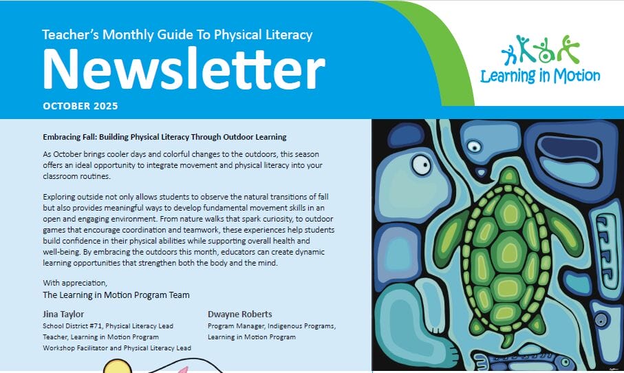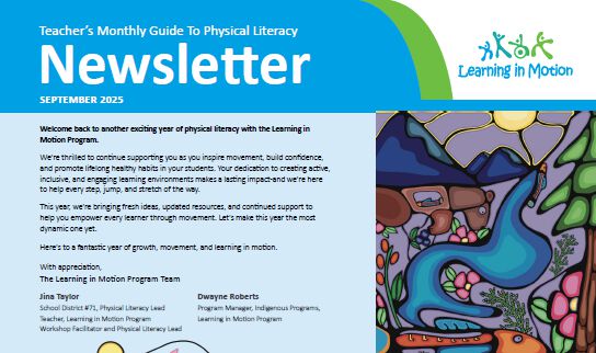 The Learning in Motion newsletter is designed for educators, offering engaging ways to support your students through activities that promote social emotional learning, traditional Indigenous games, and fundamental movement skills. Foster teamwork and connection with cooperative games, keep your class energized with our ready-to-use Activity Calendar, and reinforce healthy habits that will help you create a fun, inclusive and active learning environment where every student can thrive.